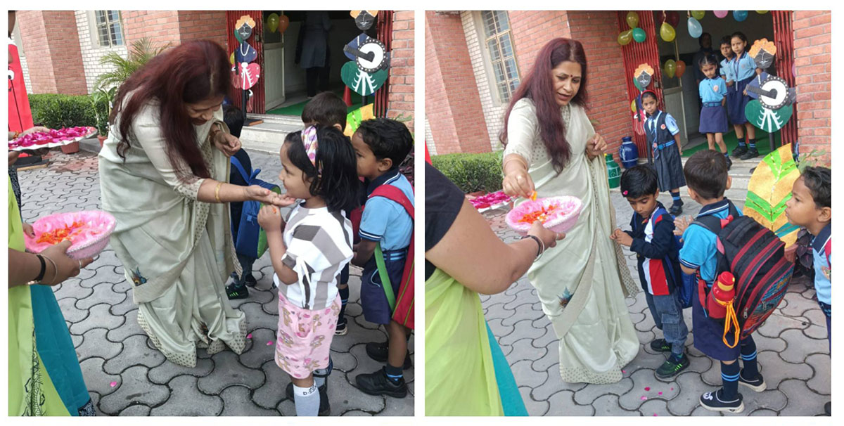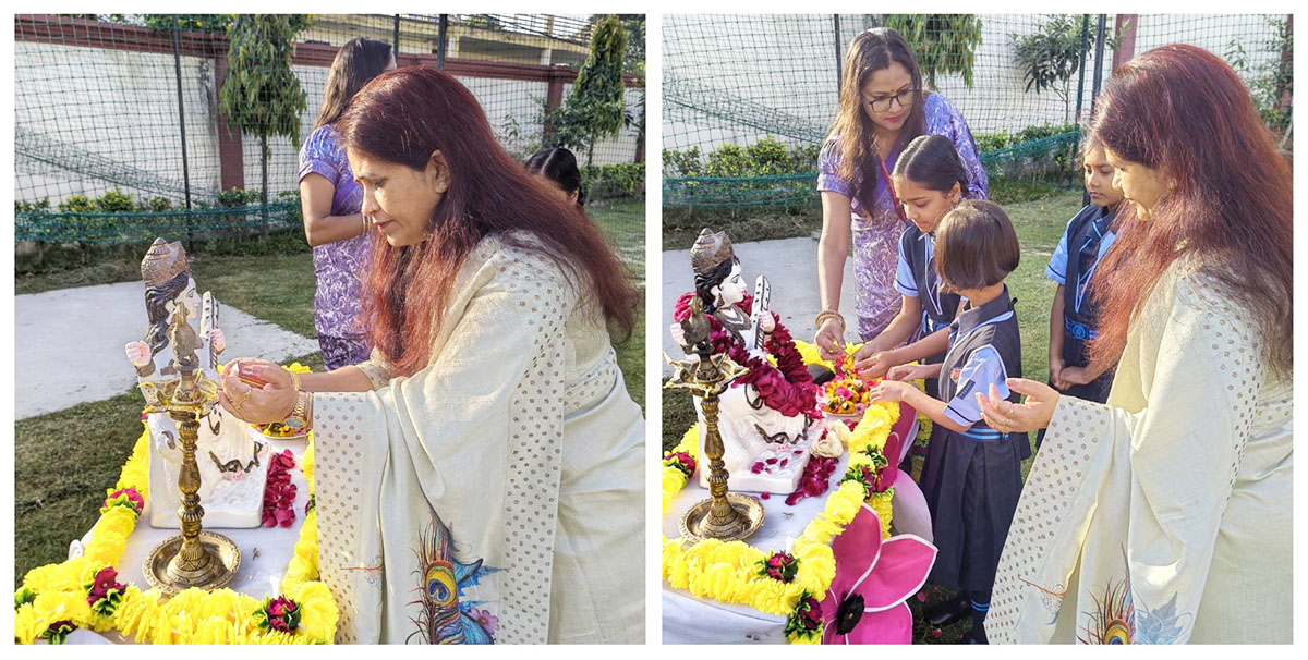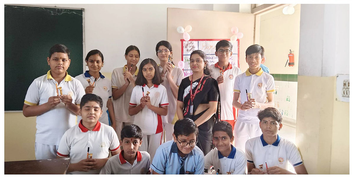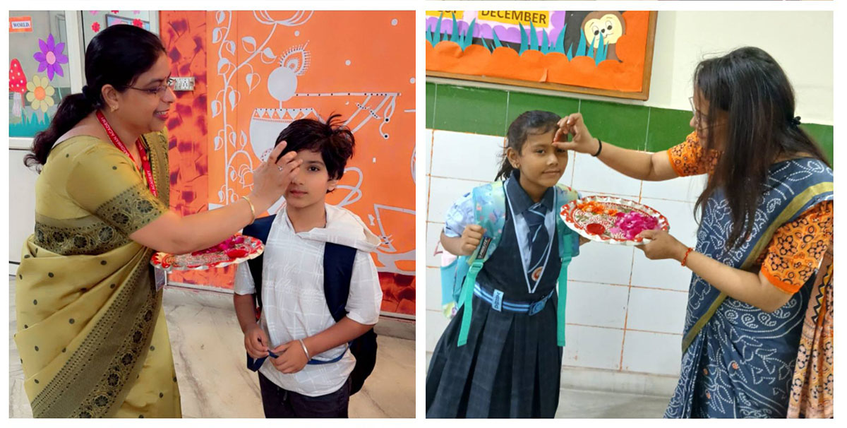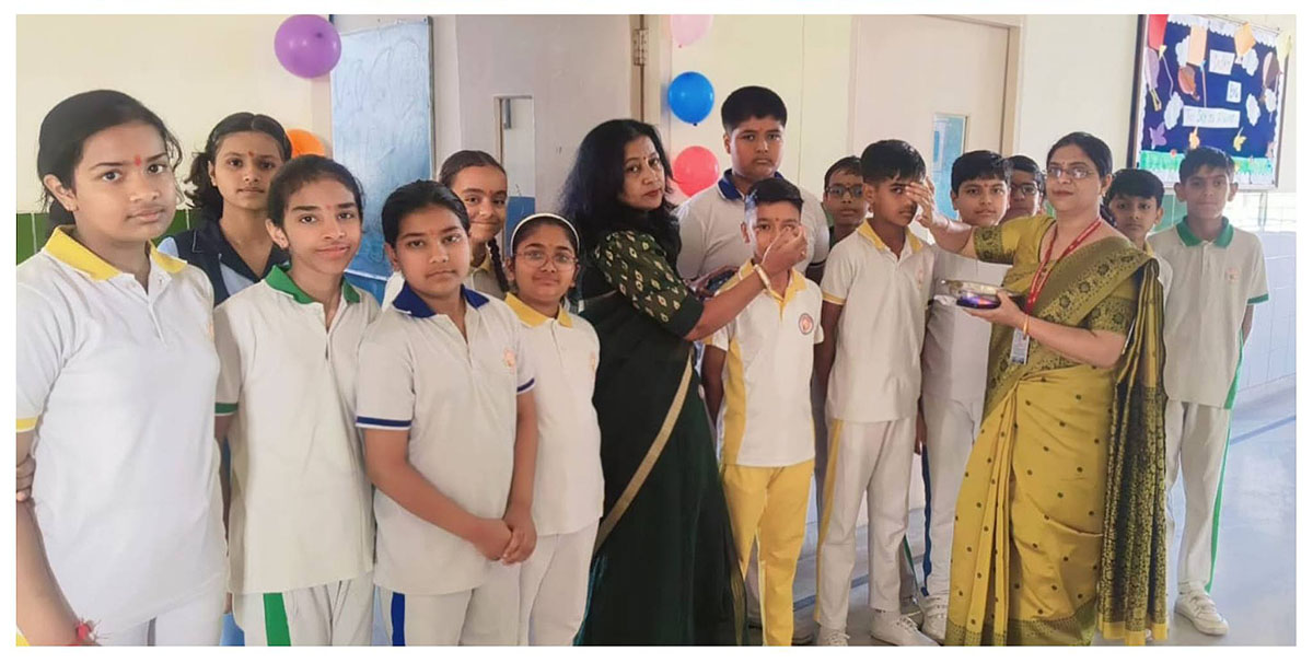 The celebrations began with a special morning assembly conducted by the teachers for the students, where we performed Saraswati Pujan to seek blessings for wisdom and knowledge. This was followed by the prayer, thought of the day, pledge, and an inspiring speech to motivate students for the journey ahead. A graceful Saraswati Vandana dance added a spiritual and cultural touch to the occasion. The assembly concluded with an encouraging address by our respected Principal Ma’am, inspiring students to begin the year with dedication and positivity.