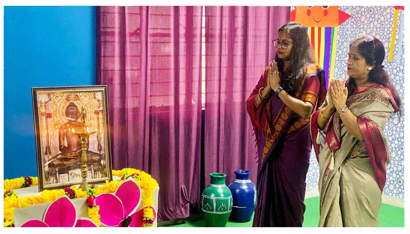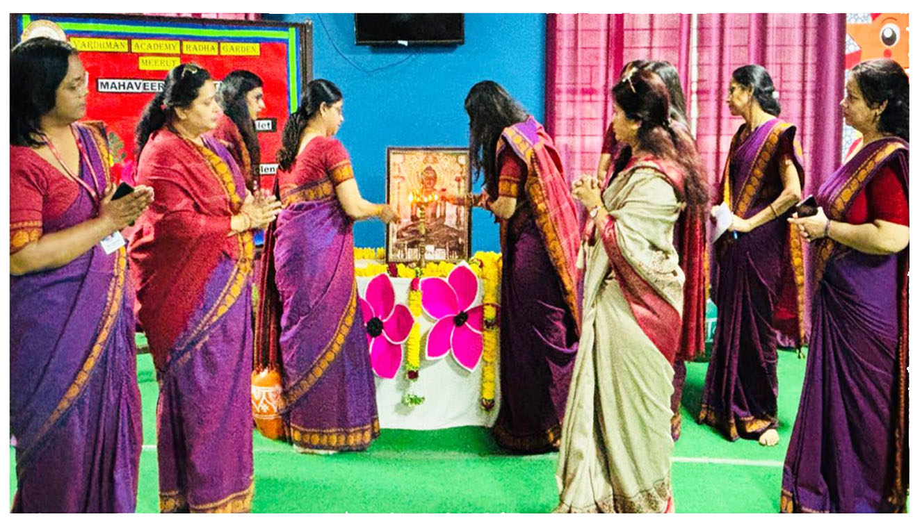 Our school joyfully celebrated the auspicious occasion of Mahavir Jayanti with great devotion and serenity. All the teachers gathered together to mark the birth anniversary of Lord Mahavir, embracing his timeless teachings of peace, non-violence, and compassion.