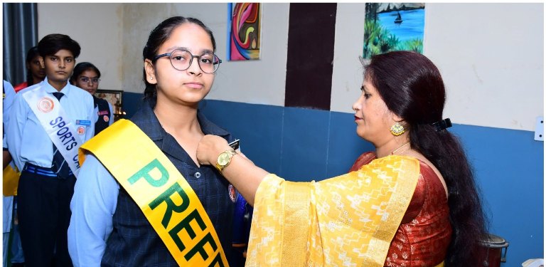 Today, our school celebrated the much anticipated Investiture Ceremony for the session 2025-26 with elegance and pride, as our newly elected Student Council took centre stage amidst enthusiastic applause. The Ceremony commenced with welcoming the guests with Guard of Honour and march past led by our student council and the parade band, followed by a heartfelt welcome to our distinguished guests--Honourable President Sir Mr Anil Kumar Jain, Honourable Secretary Sir Mr Suresh Chand Jain 'Rituraj' along with other members of the Management Committee graced the occasion. Bouquets were presented, symbolizing our gratitude and respect.